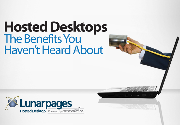 - Increased accessibility. Our Hosted Desktop solutions can be accessed from anywhere with any Internet-connected device. By giving employees the ability to access their files and applications from anywhere, Lunarpages Hosted Desktops raise a business’s productivity levels. Companies can also save money with the anywhere-availability of Lunarpages Hosted Desktops by letting workers telecommute, which can lead to decreased real estate and energy costs.
